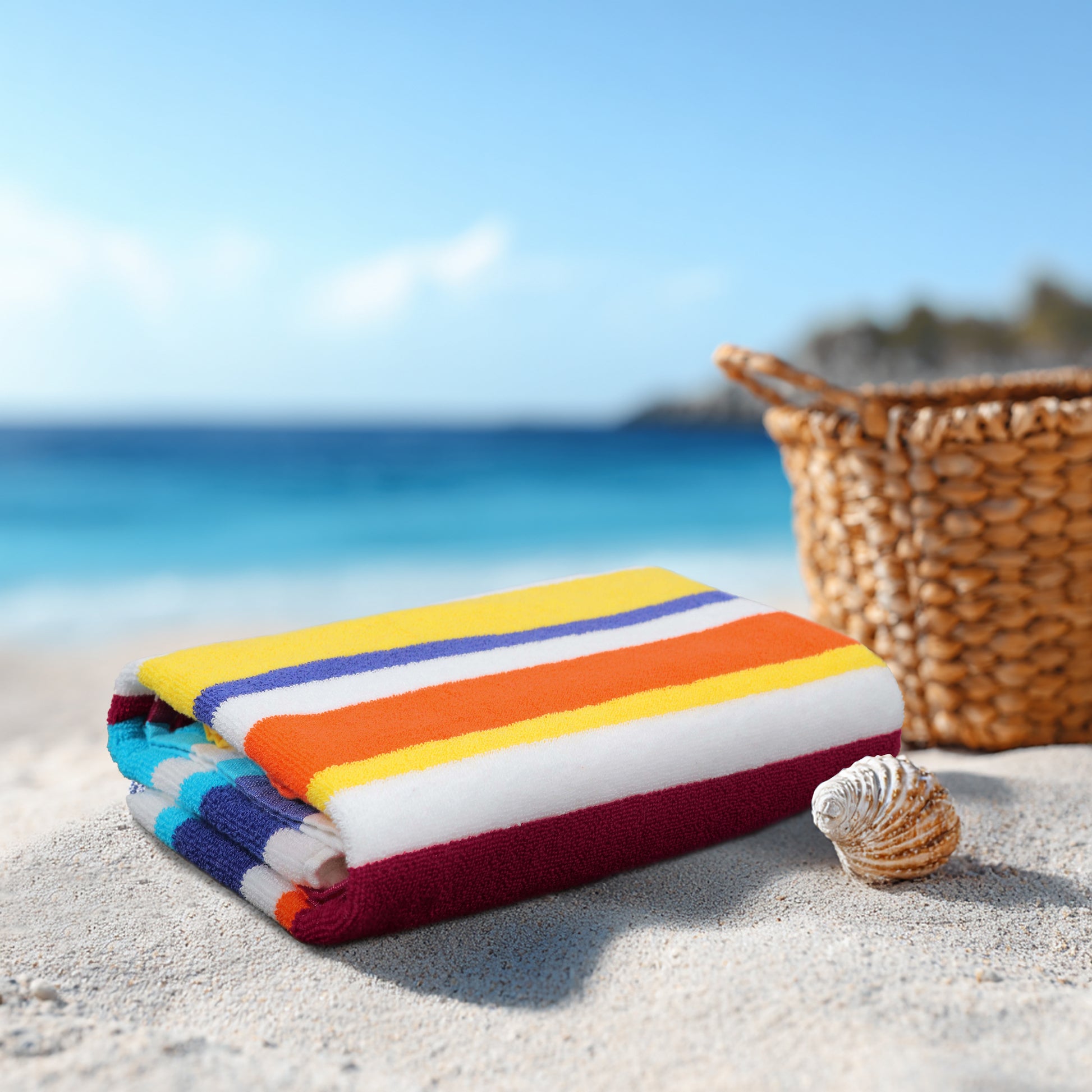 Whether drying off after a swim or lounging in the sun, this soft, absorbent, and quick-drying beach towel is perfect for the pool, beach, or travel. Made from 100% terry cotton, it is lightweight yet durable, with vibrant colors that capture summer vibes—an ideal accessory for sunny days and everyday use.